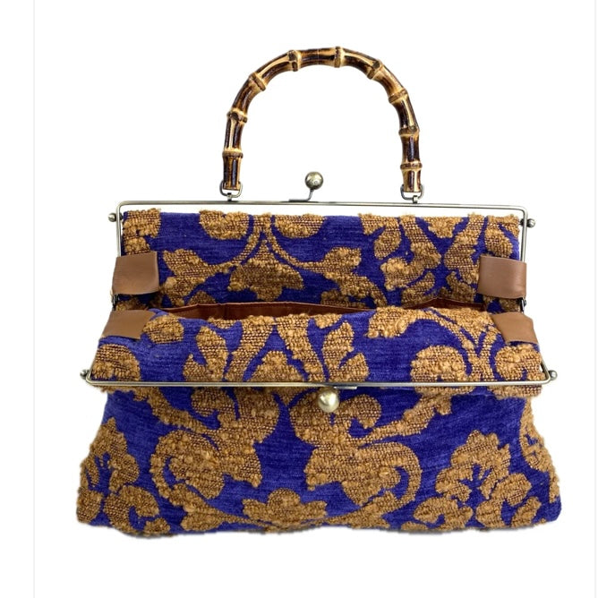 Im Inneren bietet die Tasche durchdachte Aufteilung und genügend Platz für alles, was man im Alltag oder bei besonderen Anlässen braucht. “La Viola” ist ein Statement-Piece für Liebhaberinnen von Individualität, Handwerk und außergewöhnlichen Materialien.