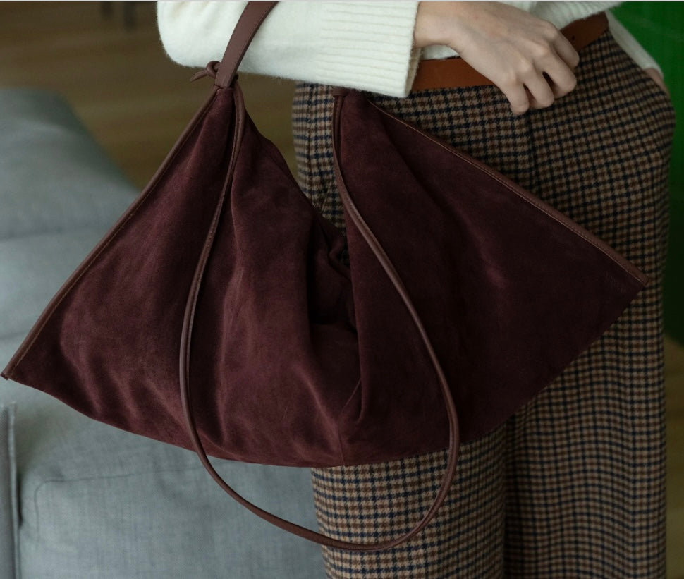 Nuvola – weiche Trapeztasche aus Veloursleder