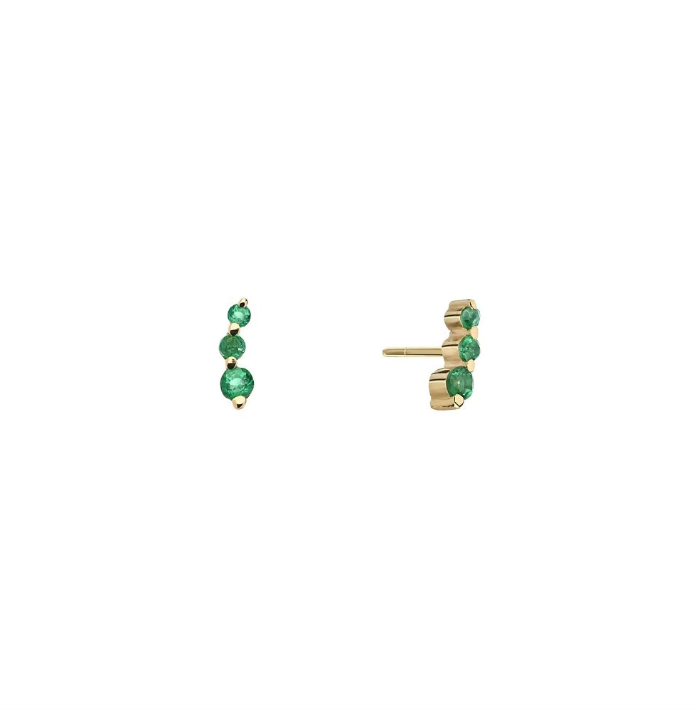 „3 dots“ ist ein Ohrstecker, bei dem 3 Smaragde in unterschiedlicher Größe, im Verlauf und in einer leicht sichelartigen Konstellation angereiht sind.